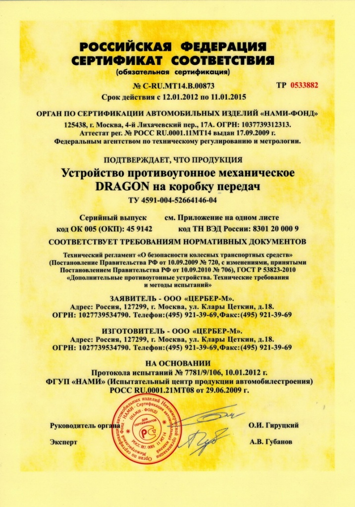 Качество DRAGON подтверждено сертификатами соответствия требованиям нормативных документов ГОССТАНДАРТА РОССИИ: